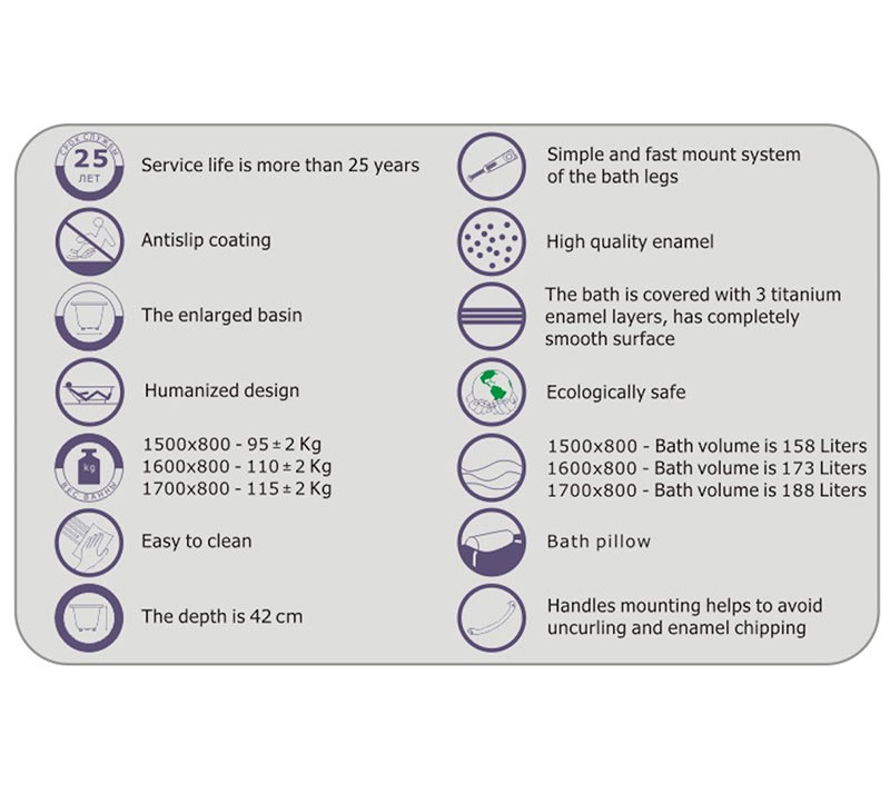 The bath is coverd with 3 titanium enamel layers,has completely smooth surface
